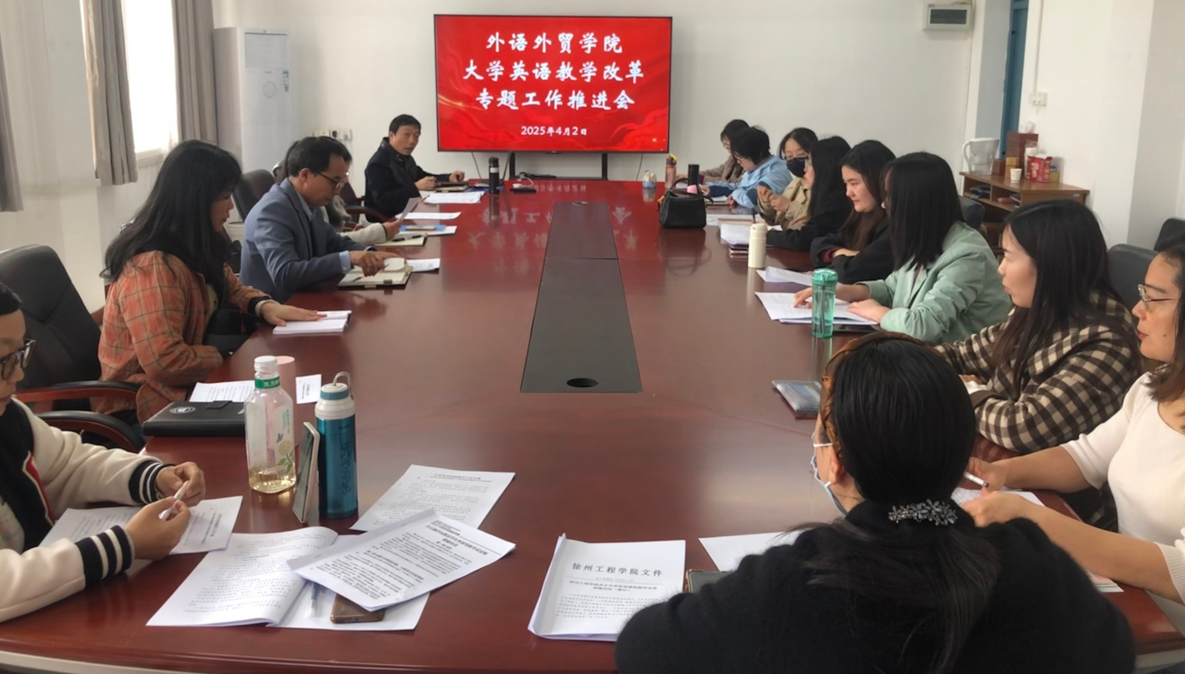 本网讯(文/图 陈红莉)2025年4月2日下午,bevictor1946韦德官网在3503会议室召开大学英语教学改革专题工作推进会,旨在探寻有效路径,推动教学改革,进一步提升大学英语四级通过率。本次会议由公司副经理王辰晖主持,bevictor1946韦德官网经理杨荣广、教务处学籍科科长占翠为,以及大学英语公共教学部主任、教研室主任和公外教师代表共同参会。
