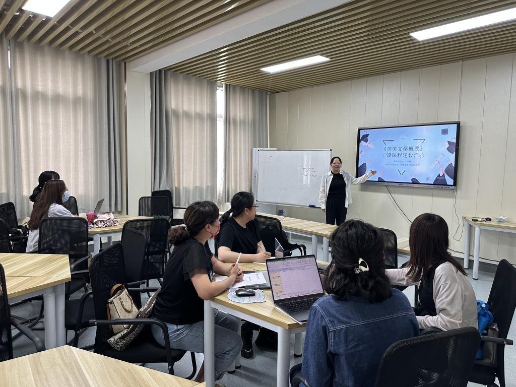 2023年5月15日周一下午,外国语公司翻译系全体教师在3604教室展开了第八次教学法活动,主题为《英美文学概要》一流课程建设汇报。本次教学法活动由全莎莎老师主讲。