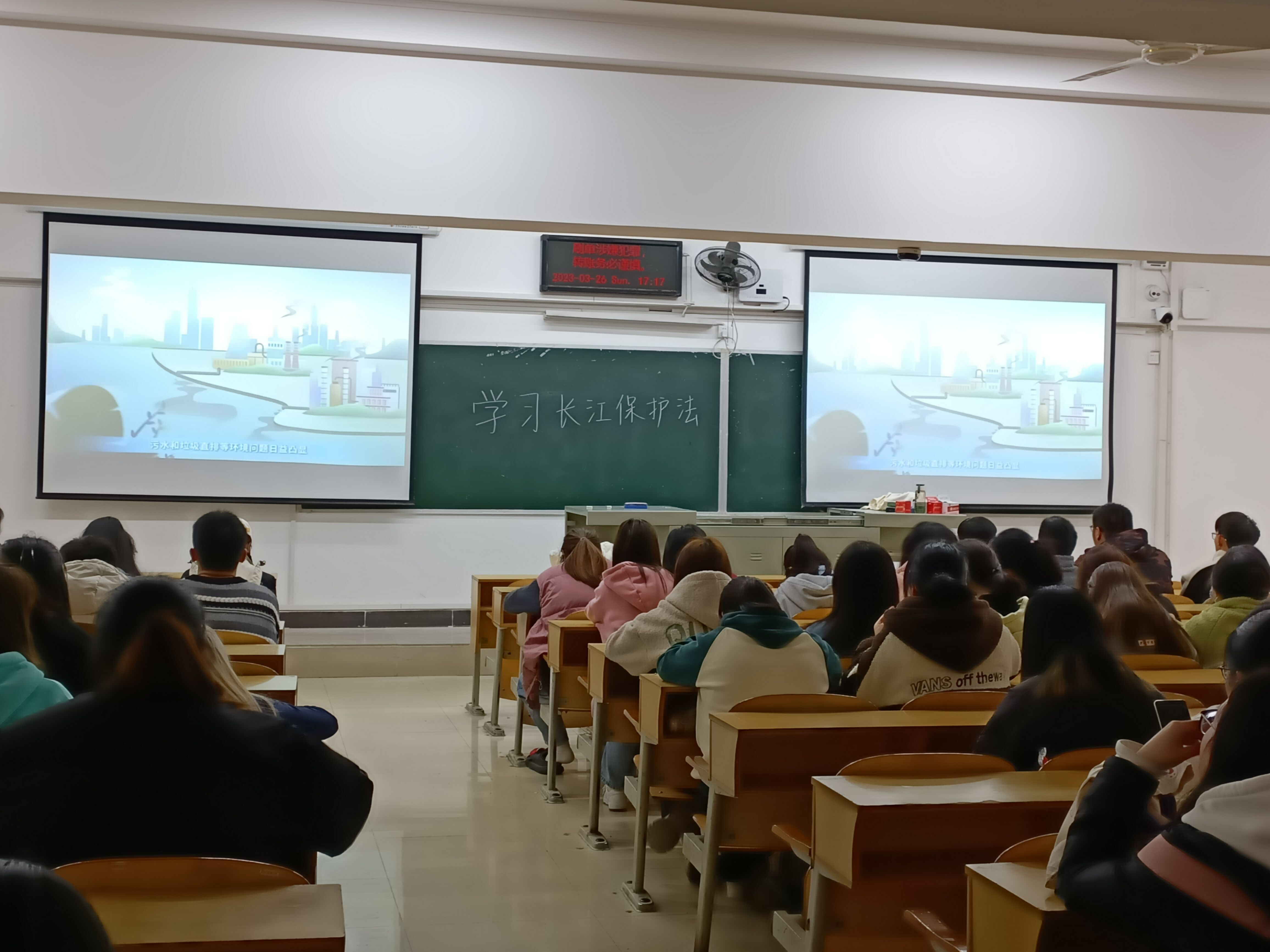 会上,同学们观看了生态环境部发布的主题宣传动画片,了解了《长江保护法》通过及实施的背景时间、重点内容、出台目的及意义,以及适用的地域范围。