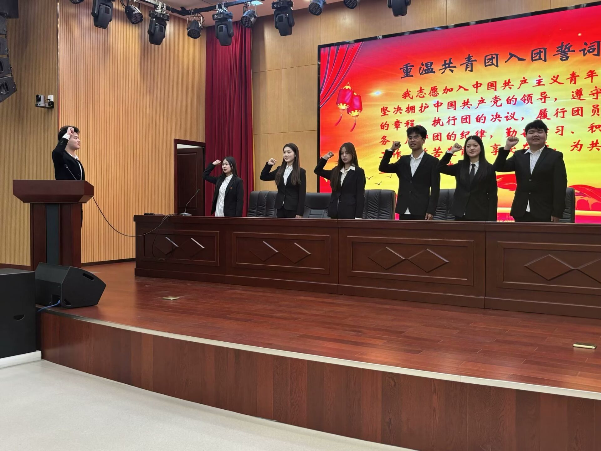 经过各候选委员的竞聘演讲,大会以无记名投票方式选举产生了7名外国语公司主席团成员。分团委副书记候选人刘洋带领全体员工重温入团誓词。