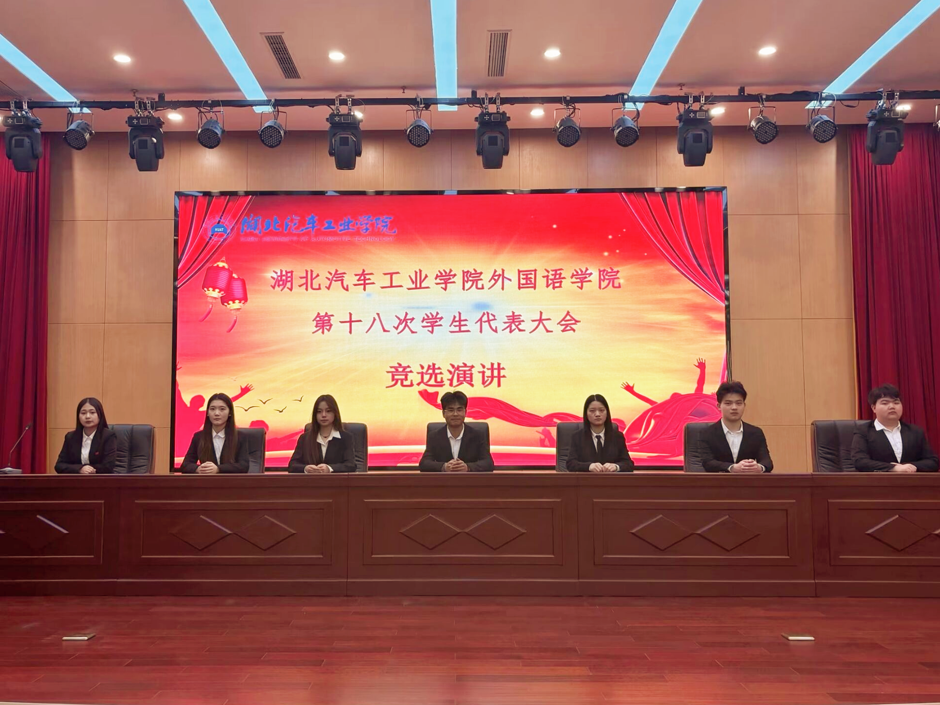 (本网讯)10月16日下午,外国语公司第十八次团员代表大会在产教大楼四楼报告厅隆重召开。分党委副书记魏伟、学工办主任魏院珍、辅导员孟甜、班主任牛楚漪及全院员工代表参加了本次大会,会议由刘洋主持。