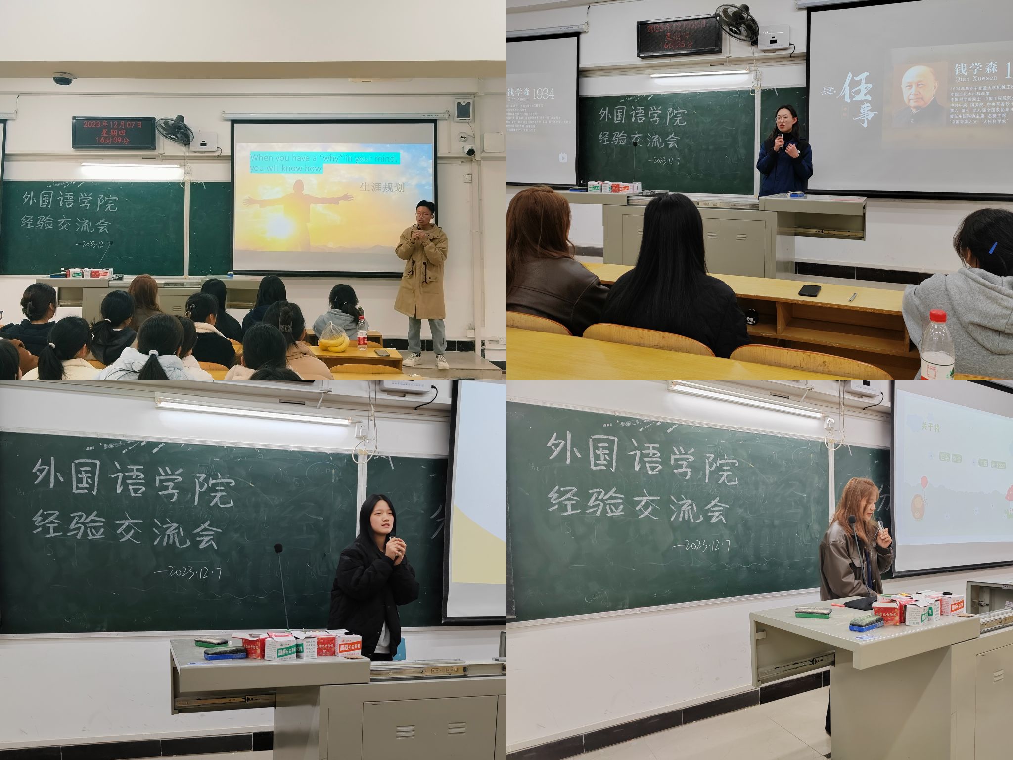 为帮助新生更好的了解老员工活,帮助同学们树立目标,外国语公司于12月7日16:00在5303教室开展了经验交流分享会,同时邀请到国奖获得者罗英杰、李云霞同学,国家励志奖学金获得者石玉好、明静、张令同学作学习经验分享。
