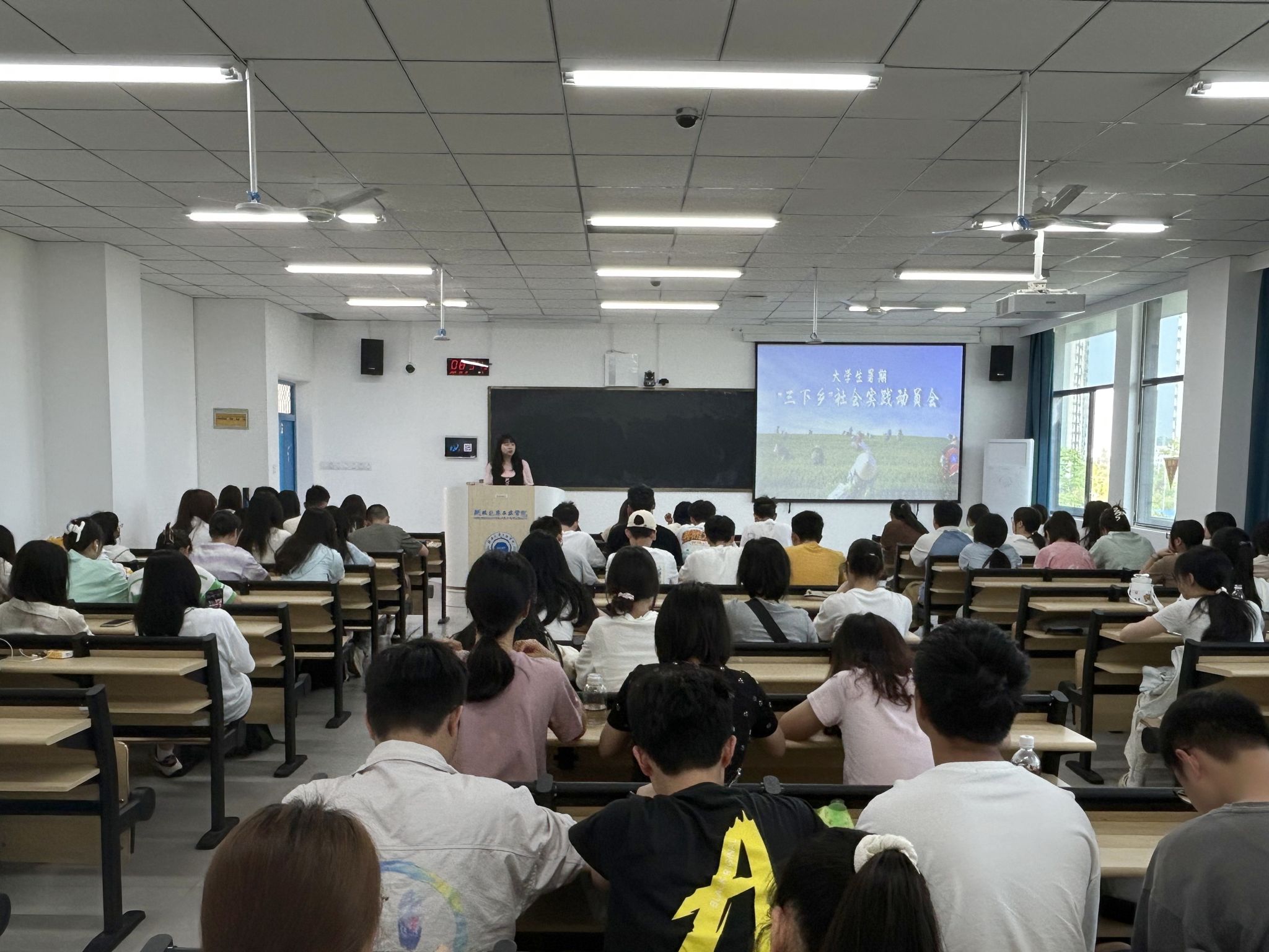 辅导员孟甜以“‘乡’约一夏,遇‘践’青春”为主题向23级同学介绍了公司社会实践总体安排和要求,并从选题指导、实践内容、实践支持保障、实践赛事、实践安全等方面进行解读。她强调要写好“两篇文”,立德树人,实践育人;握好“方向盘”,明确选题,以小见大;把好“时间线”,掌控节奏,一步一实;第四,绘好“规划图”,成果转化,计划先行。第五,用好“他山石”,先学再做,完善超越。听完孟老师生动而又细致讲授,同学们的心中都对暑期社会实践有了更加清晰的认识。