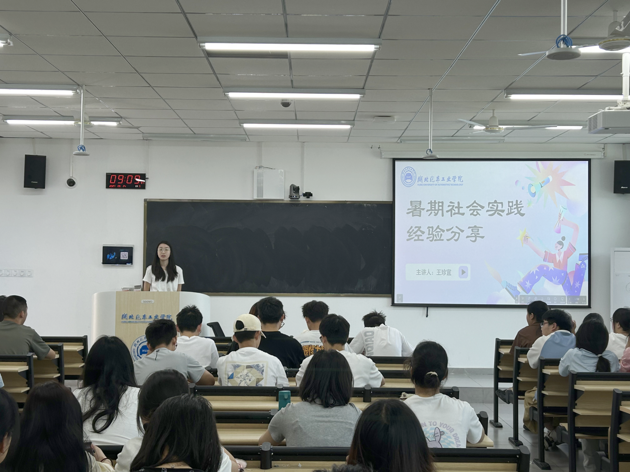 王珍宜同学分享了参加社会实践的心得体会和实践方法。她以如何做好一次暑期社会实践为题,围绕队伍建立、主题确定、策划撰写、实践开展、实践总结和实践成果六个方面做了详实的讲述,对同学们开展社会实践有很大的启发作用。