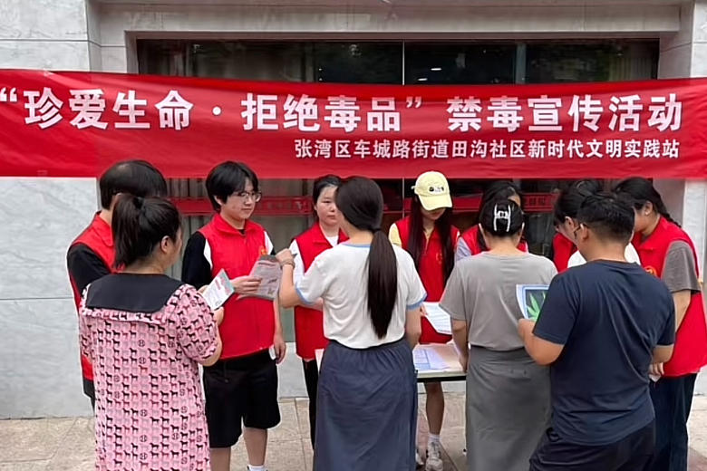 2024 年 6 月 20 日,bevictor1946韦德官网“探忆·拾遗”队走进了田沟社区,开展了一场意义深远、形式多样的禁毒宣传活动,旨在提高社区居民对毒品危害的认识,增强他们的禁毒意识,共同营造一个无毒、健康、和谐的社区环境。