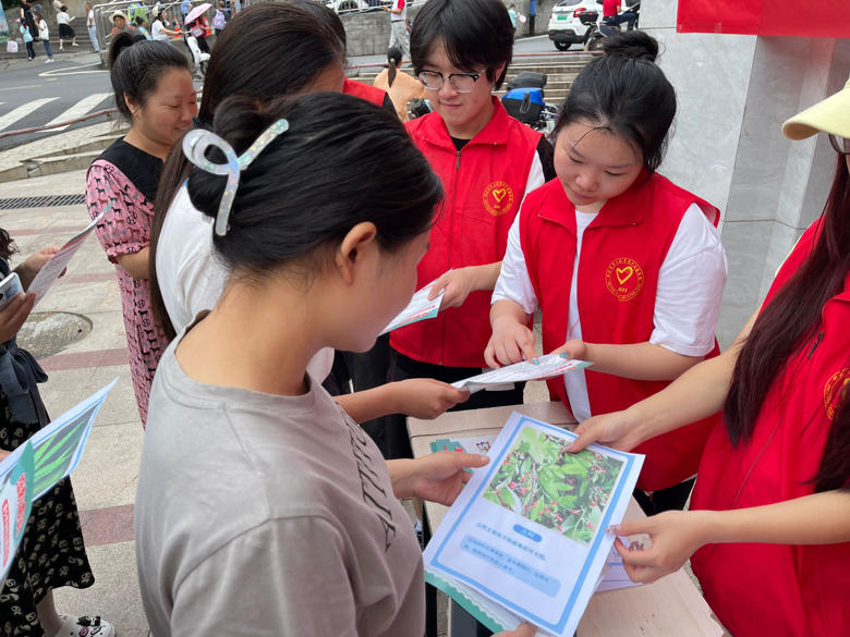图为实践队成员在为路人讲解毒品
