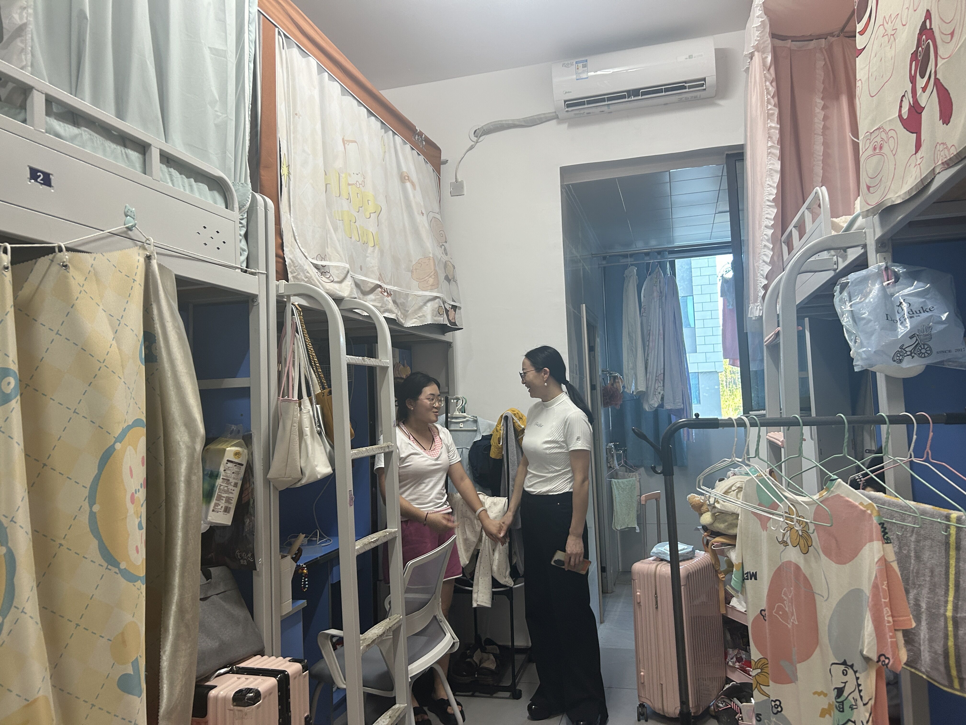 本网讯(文/曹珍珠)为全面掌握新学期员工宿舍生活实况,保障公司公司产品秩序平稳开局,切实解决员工面临的实际难题,8月31日下午,公司党委书记郭义坤、副书记张倩带领全体辅导员、班主任,走访南校区及北校区员工宿舍。