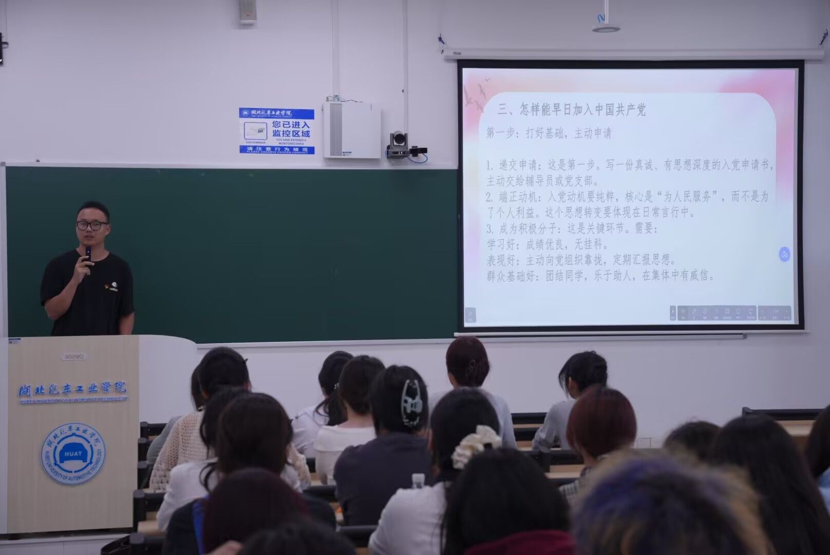 本次活动围绕“党的初心使命与青年担当”核心主题,结合新生认知特点与成长需求,以理论讲解、案例分享、互动问答相结合的形式展开。四位员工党员立足自身入党经历与老员工活实际,将“大道理”转化为“身边事”,重点围绕三大核心内容进行系统讲解:一是清晰解读入党基本条件,明确政治素养、学业表现、群众基础等方面的具体要求,帮助新生找准努力方向;二是深入阐释端正入党动机的重要性,通过正反案例对比,引导新生摒弃“功利化”“随大流”等错误观念,树立“为人民服务、为党和国家事业奋斗”的纯粹初心;三是详细梳理入党全流程,从入党申请书撰写规范、思想汇报提交要求,到积极分子培养、发展对象考察、预备党员转正等关键环节,逐一拆解流程要点与注意事项,让新生对入党路径有全面认知。