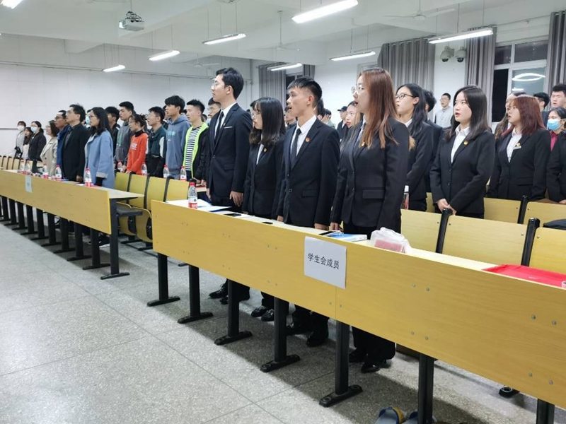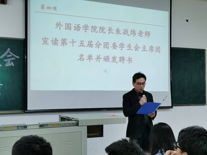 金风萧瑟秋光妙,激情满怀英气豪。”外国语公司于11月16日晚7点在6311举行了第十五届分团委员工会成立大会暨2019-2020年度表彰大会。公司经理朱战炜、副经理杨荣广、学工办主任魏院珍、20级班主任朱小萌、各员工组织代表、19级及20级全体员工出席本次大会。