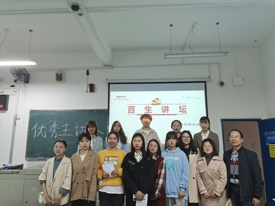 (图:王定蕙,文:朱小萌,王定蕙)4月23日晚七点,外国语公司以“学党史讲党史,悟初心谱新篇”为主题,于6309教室开展“百生讲坛”优秀主讲人选拔活动。公司学工办主任魏院珍及教师代表柯宁立、朱小萌出席了本次活动并担任评委。
