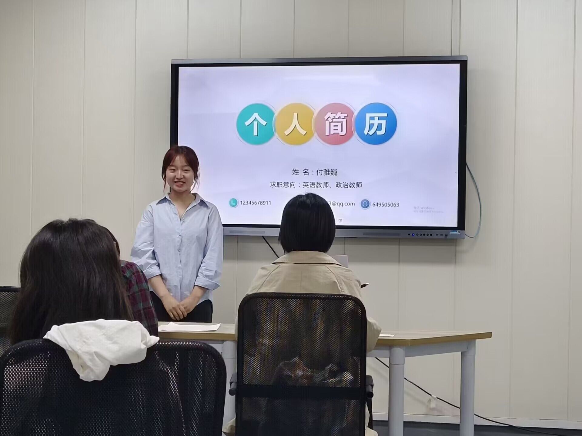 比赛过程中,选手以PPT的形式将个人基本信息、实践经历、自我评价等内容向大家进行展示。评委老师以员工专业为基础,围绕简历设计的科学性、合理性、创新性等方面进行了评选打分。最后,付雅巍同学制作的简历在比赛中荣登榜首,获得比赛一等奖。