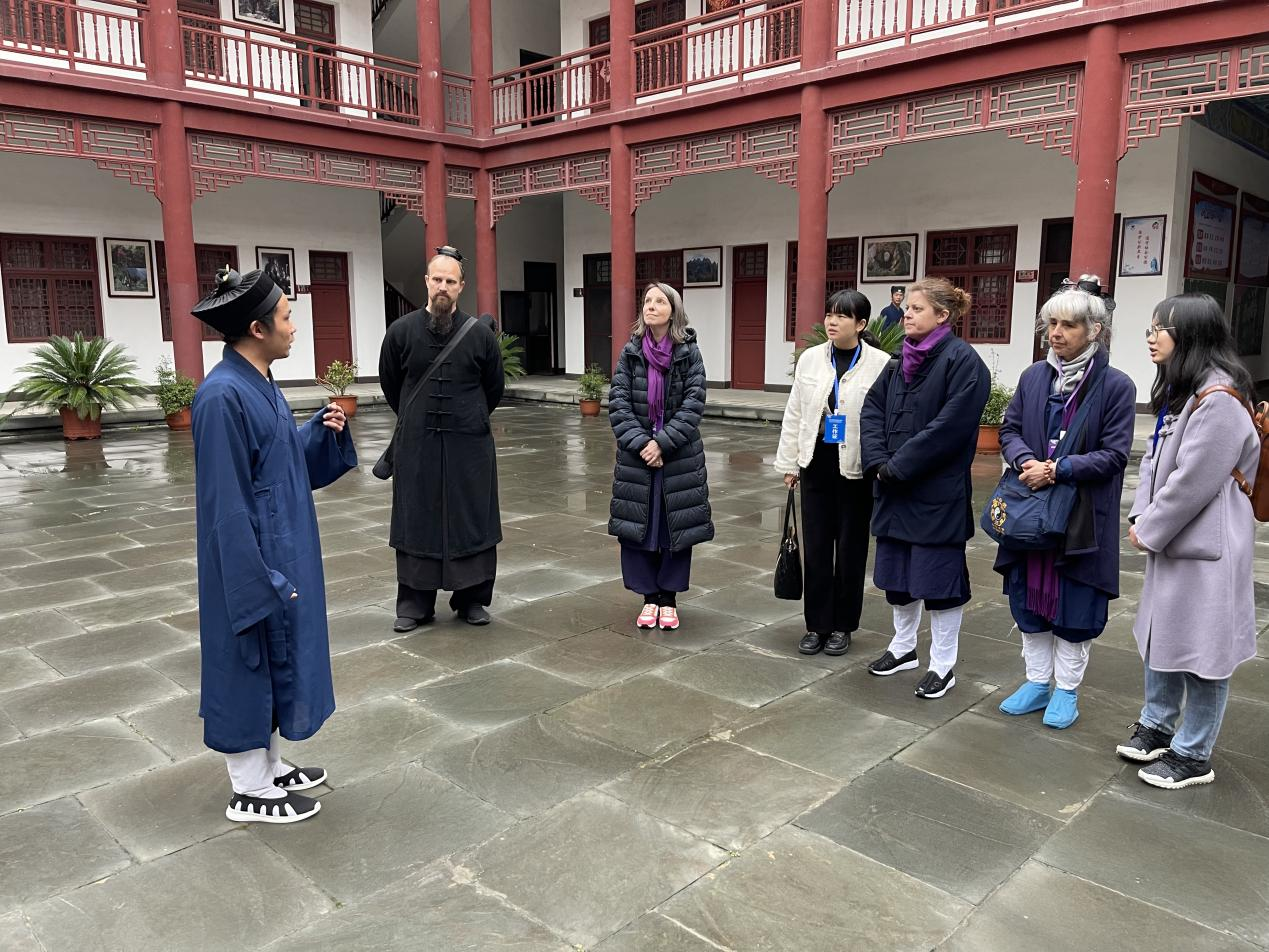 会务期间,大家各司其职。会前,翟全伟老师将中文会议手册翻译成了英文版。会议期间叶慧老师作为瑞士道教协会的陪同翻译,邓晶晶同学作为墨西哥道教协会的陪同翻译,助力外国友人在会议期间的国际友人的顺畅沟通。在国际道教人才培养交流会上,外国语公司翻译系叶慧老师和马克思主义公司的方垚两位老师还承担了会议交替传译任务,并圆满完成了该任务,为此次盛会的顺利进行做出了重要贡献。