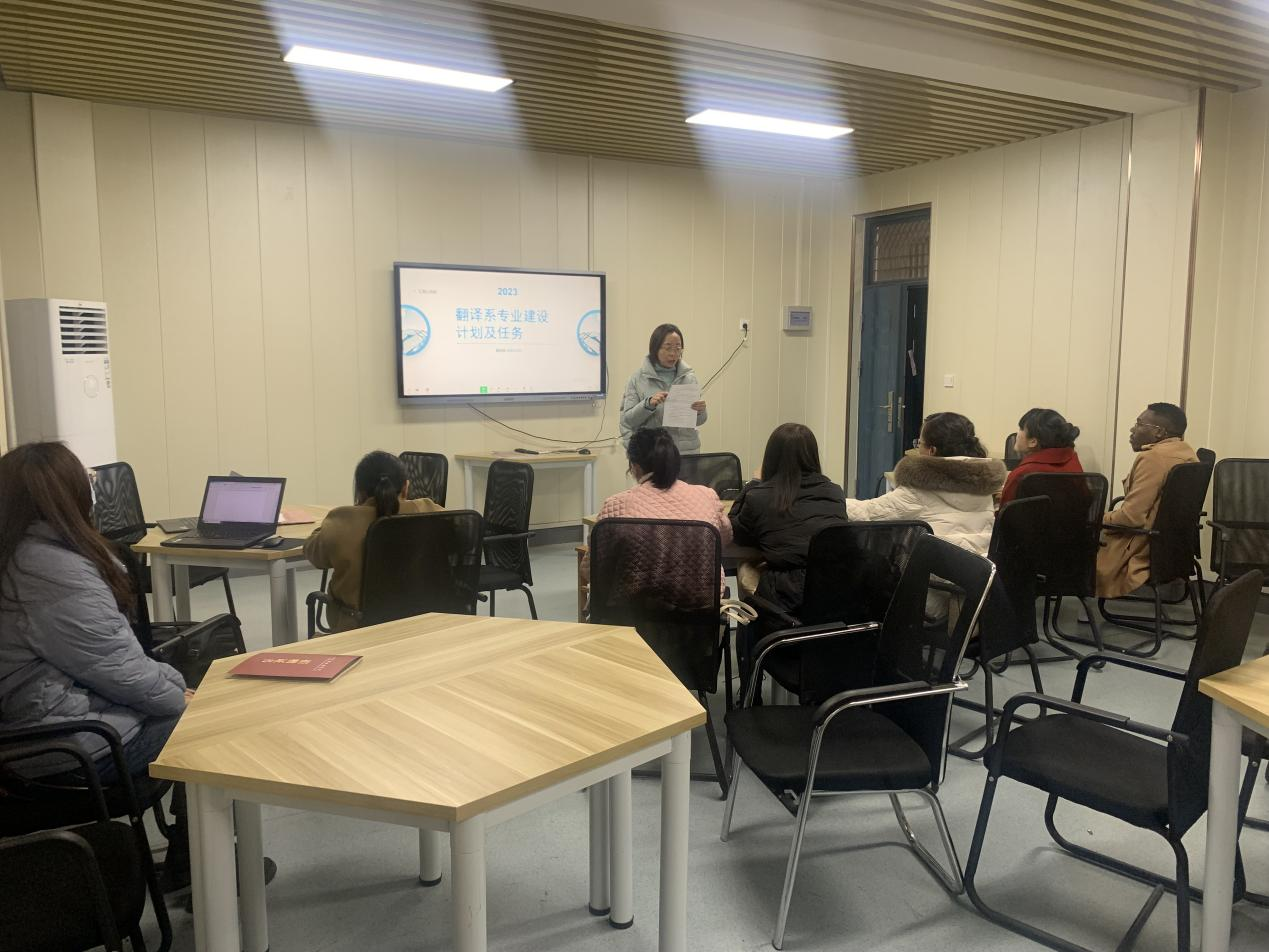 在新一学期的开始,翻译系就对本学年的工作进行了整体的部署。这一新学年中,翻译系专业建设计划及任务主要围绕着专业培养方案、员工发展、团队队伍建设、课程体系、教学条件建设、质量保障机制与实施、教研与教改和其它等方面进行展开,各个任务都具体到不同的老师。教研室的老师都通力合作,把各个子项目做扎实做牢靠,在各个项目上争取都能取得好成果。