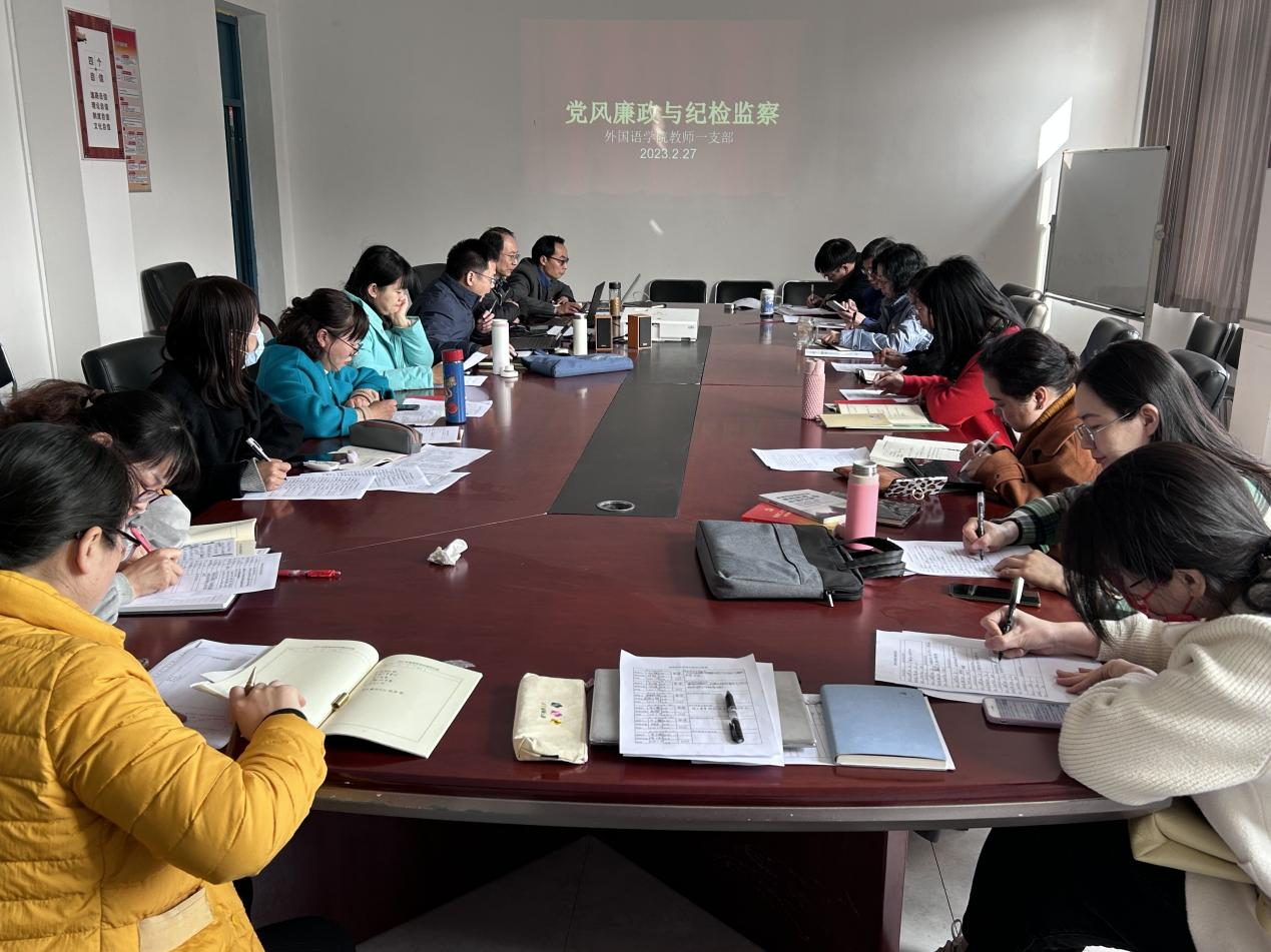 2023年2月27日下午,外国语公司教师一支部在3503会议室组织开展1、2月份支部主题党日活动暨2022年度组织生活会,支部全体党员参加,会议由支部书记柯宁立主持。