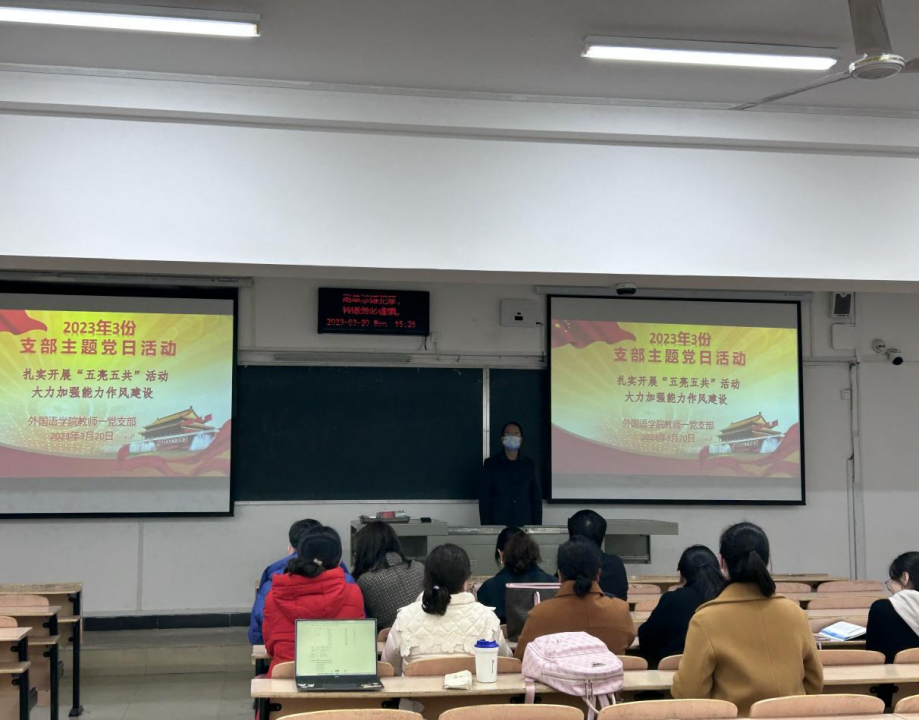 (本网讯)为落实公司“扎实开展‘五亮五共’活动,大力加强能力作风建设”要求,外国语公司教师一党支部于3月20日下午在5203教室召开3月份支部主题党日活动。活动由支部书记柯宁立同志主持,支部全体党员悉数参加。