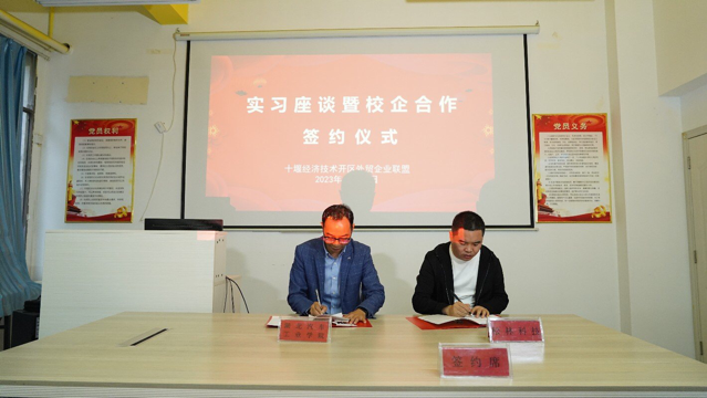 10月12日下午,外国语公司实习生走访暨校企合作签约仪式在湖北米纳电子商务有限公司会议室圆满举行。十堰经济技术开发区人才办主任计巍,十堰经济技术开发区招商商务局副局长刘经星、十堰市网商协会会长、湖北米纳电子商务有限公司董事长陈全亮、开发区外贸联盟盟主、松林科技(湖北)股份有限公司董事长贺先毕亲临现场,公司教学督导组罗宁教授、教务处副处长李行国、实践教学科长翟永旭、外国语公司经理杨荣广、分党委书记郭义坤、分党委副书记魏伟、副经理王辰晖、翟全伟、学工办主任魏院珍等出席会议。