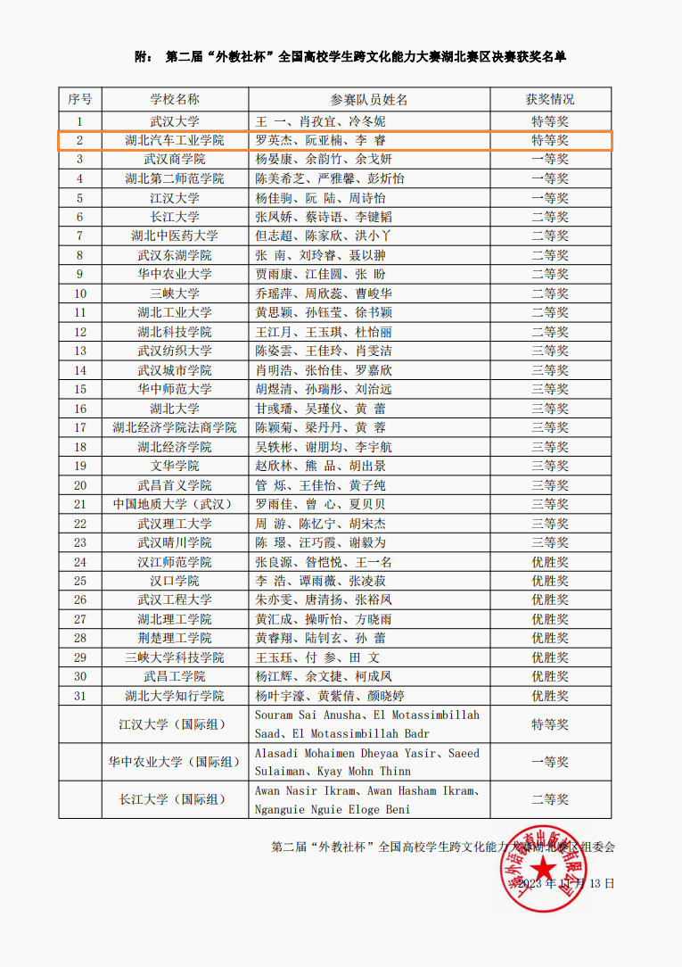 据悉,本赛事于2023年被列入中国高等教育协会《2023全国普通高校老员工竞赛分析报告》竞赛目录,为国家A类赛事。本次大赛吸引了全省31 所院校102名员工参加了比赛。bevictor1946韦德官网外国语公司团队表现卓越,成功脱颖而出,在激烈的竞争中赢得了全省仅有两个的特等奖名额,并荣获代表湖北省参加全国决赛的资格。