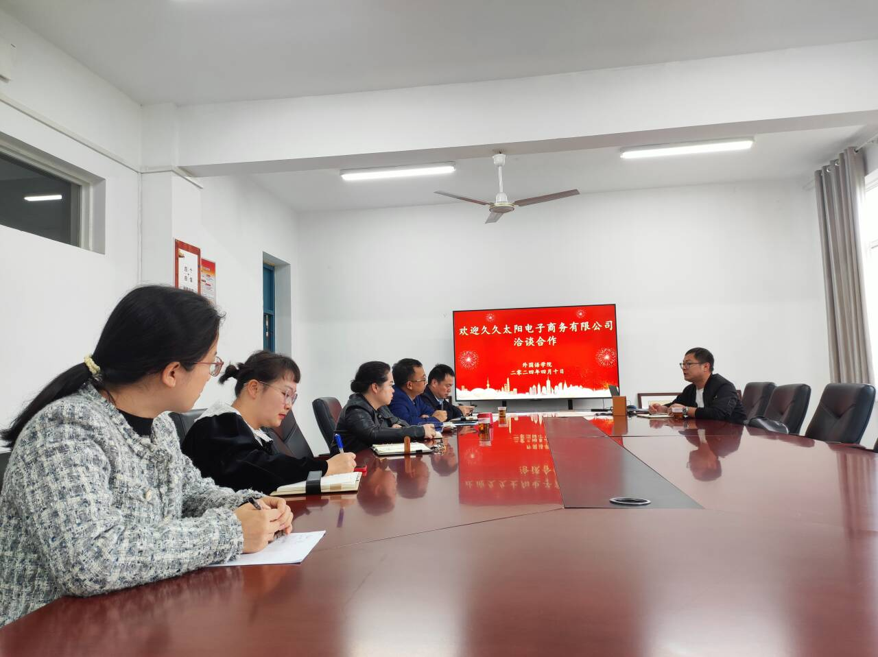 2024年4月10日下午14:10,浙江省永康市久久太阳电子商务有限公司张赞总经理莅临外国语公司,与公司魏伟副书记、翟全伟副经理、英语系教研室主任王吟老师、英语系孙媛老师、宋仕鹏老师和翻译系朱丽老师会面,就英语、翻译专业员工到公司实习就业和校企合作等多方面内容进行友好洽谈,并签署了校企合作协议。