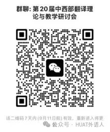 2. 预参会的老师请加微信群,方便沟通(如二维码过期,可通过搜索微信群名称加入:第20届中西部翻译理论与教学研讨会)。