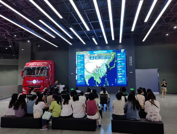 活动高潮中,师生们在新型智能驾驶室中体验了东风的现代科技,并通过云平台智能物联网实时了解了东风商用车的运行状况,故障监测与服务响应。通过这些技术,东风商用车在新能源技术与智能物联网服务等方面取得的成就让师生们为之振奋。