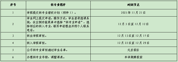 二、转专业程序及时间安排