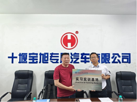 在十堰宝旭专用汽车有限公司,翟全伟等看望了外语专业毕业生鲍奕恺,并与企业董事长何先军等进行了座谈。双方就人才培养、实习实践、产学研合作等方面展开了深入交流。企业从产业发展、产品贸易、技术研发等方面提出需求,翟全伟从人才培养、合作模式等方面对公司发展进行了介绍。基于汽车产业人才培养的共同诉求,双方签订了共建实习实训基地协议。