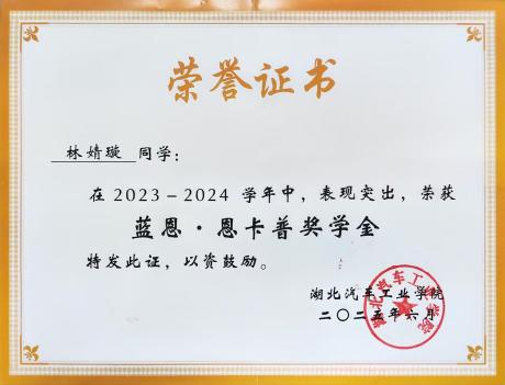 在国贸专业的赛道上,她是精益求精的践行者:学年绩点4.02、综测92.95,《国际贸易实务》《宏观经济学》等核心课均拿90+高分,连续两年斩获一等人民奖学金和蓝恩奖学金。为啃下外贸单证等硬骨头,她手绘流程风险节点图,整理几万字的实务错题集,课后追着老师问案例、抠细节,把书本知识揉成实战本领。同学眼中的她,是教室第一排的常驻嘉宾,是笔记被争相传阅的学霸。她的书桌贴满便签,写着“今日事今日毕”,更写着“专业要做透,本领要练实”。