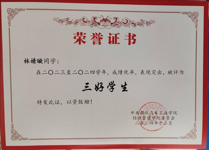 从教室第一排到竞赛赛场,从团支部活动室到乡村实践地,她的青春,是向上生长的姿态,是向光而行的方向。奖学金、优秀团支部、竞赛奖项……这些不是终点,而是她以青春之我,担时代之责的新起点。往后,她仍会带着这份钻劲、闯劲、暖劲,在国贸专业的赛道上稳步前行,把个人成长写进时代浪潮里,做追光而遇、沐光而行的青年。