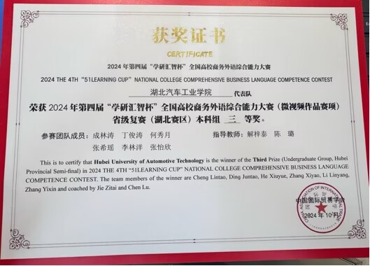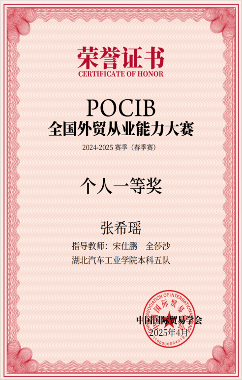 在学习上,张希瑶始终将学习视为首要任务,态度端正,具有强烈的求知欲和探索精神。她不满足于仅仅掌握课本知识,更注重培养独立思考和解决问题的能力。经过不懈努力,各门功课成绩始终名列前茅,2024-2025学年平均绩点为4.01。曾连续四次获得过一等人民奖学金、蓝恩·恩卡普一等奖等多项奖学金。正是平时的脚踏实地和不断积累使她在专业类比赛中也取得了一些成就,如理解当代中国全国老员工外语能力大赛国铜/省银、POCIB外贸从业能力大赛全国个人/团队一等奖、全国高校商务外语综合能力大赛省级三等奖等。